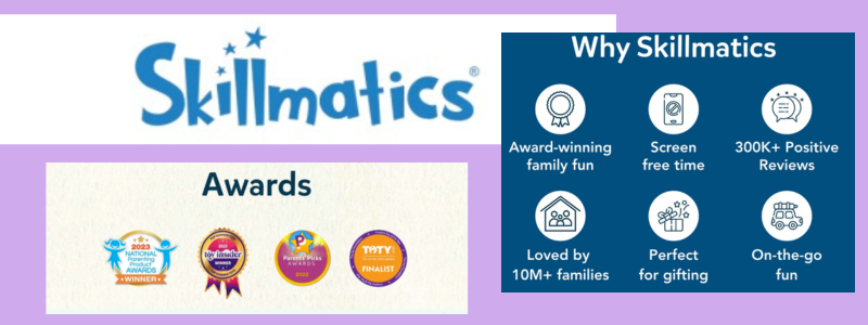 Skillmatics is a a toy and game company dedicated to developing learning and play experiences for children of all ages, and to inspire a lifelong love of learning and play.